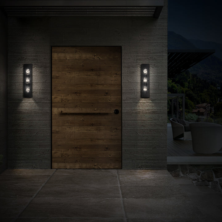 Strata 28in LED 3000K/3500K/4000K 120V-277V Outdoor Wall Sconce in Black with Optic Haze Quartz