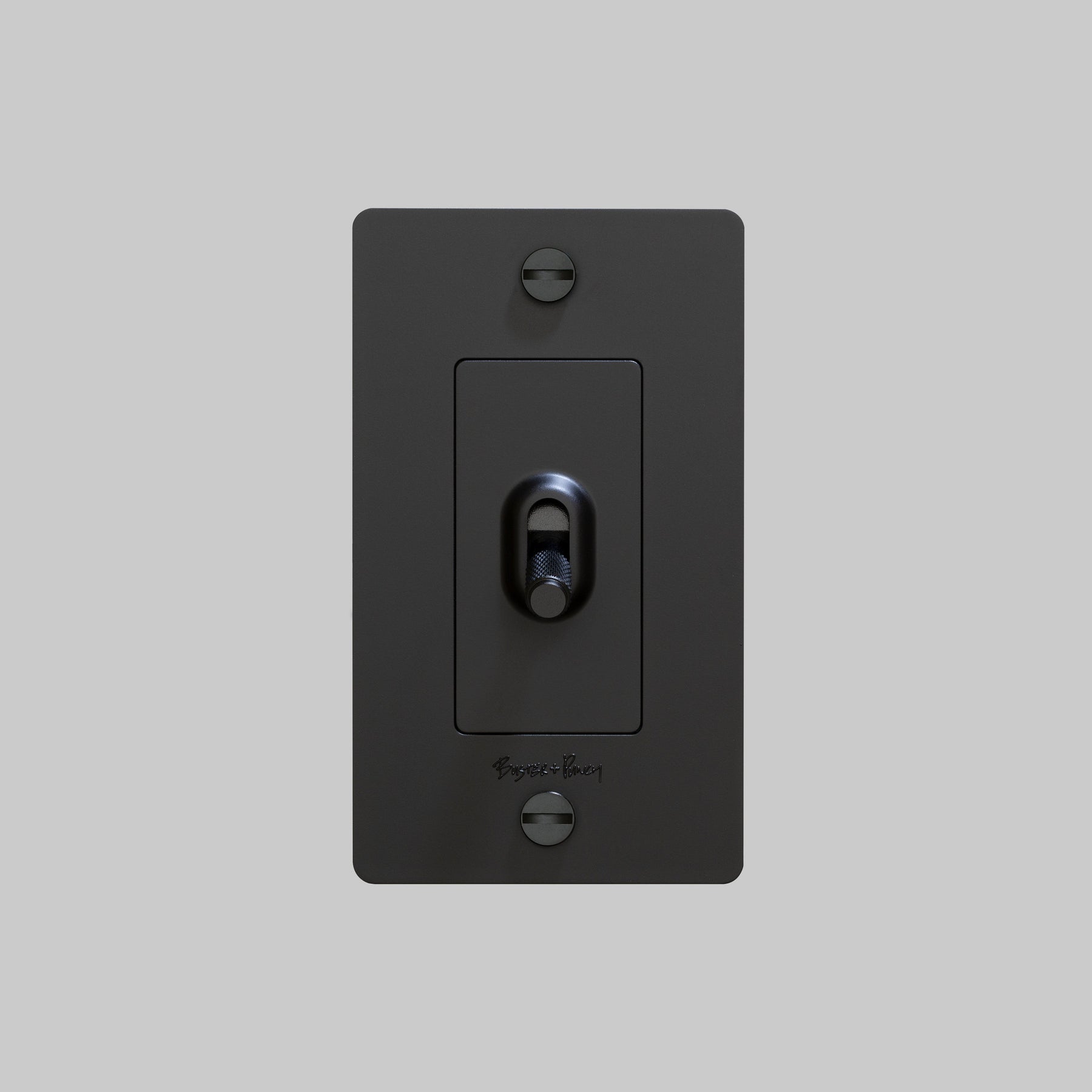 A solid metal toggle switch with a diamond-cut knurled knob to feel amazing with every touch. The switch is finished with a flat plate in polycarbonate black and our signature solid metal coin screws. You can also team them up with our dimmers, duplex and USB outlets in matching finishes.