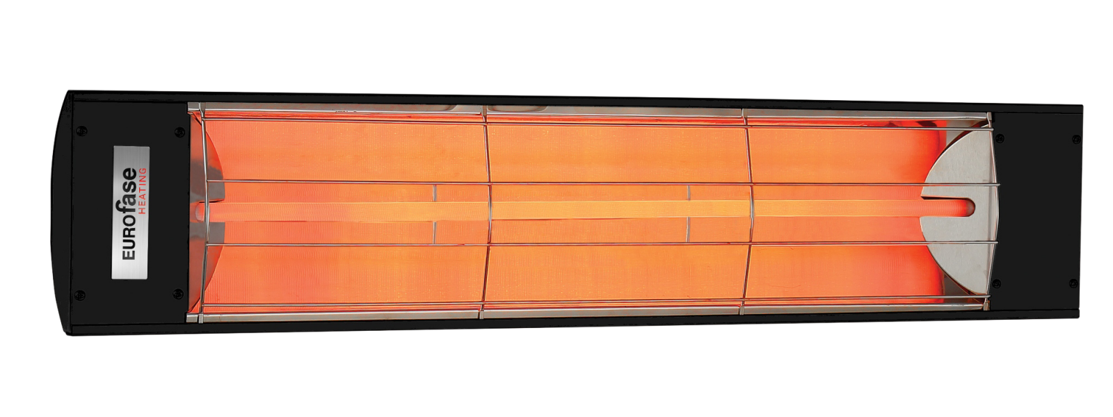 Designed using a mix of functionality and style, these 4000-watt heaters use quartz heating elements and include 6-inch wall/ceiling brackets. The heating range for the Eurofase 39-inch 4000-Watt Dual Element heater is approximately 8 feet x 10 feet (80sqft).