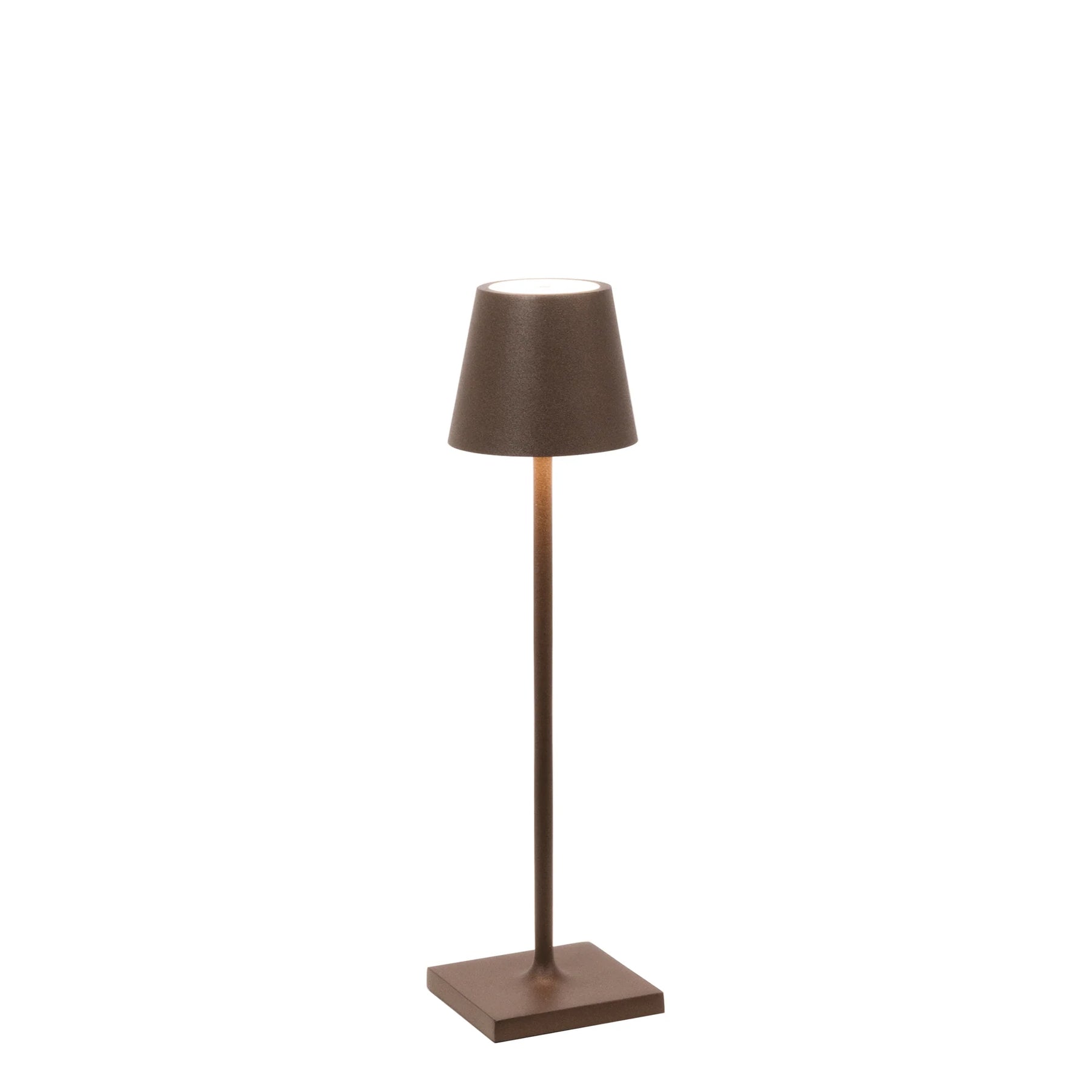 Cordless, rechargeable, battery table lamp. A touch control on the top of the lamp head allows you to switch the light on, adjust its intensity and select its color temperature.